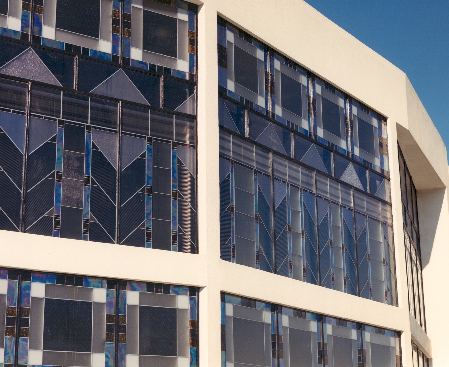 This project involved the renovation of an existing, 1960s office building. The expansive building complex, created for Hewlitt Packard as their East Coast distribution center, is comprised of 500,000 square feet of office and warehouse space. The highlight of the new commercial lobby is a custom, stained-glass curtain wall inspired by Frank Lloyd Wright.