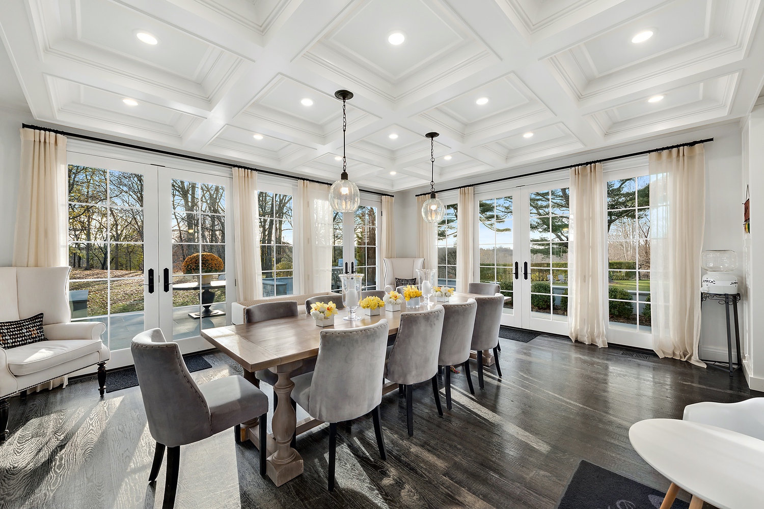 This project involved a complete renovation of and an addition to a once-stately estate situated on 11 wooded acres. The addition to the home involved the removal of an original wing and the creation of a new left wing in order to balance an asymmetrical façade while providing the programmatic needs for the family. The new addition allowed for an attached garage, a mud room, an enlarged kitchen and a family room, as well as bedrooms above for the children. The interiors of the home incorporate traditional finishes with a modern interpretation of color and style to allow for an updated modern estate.