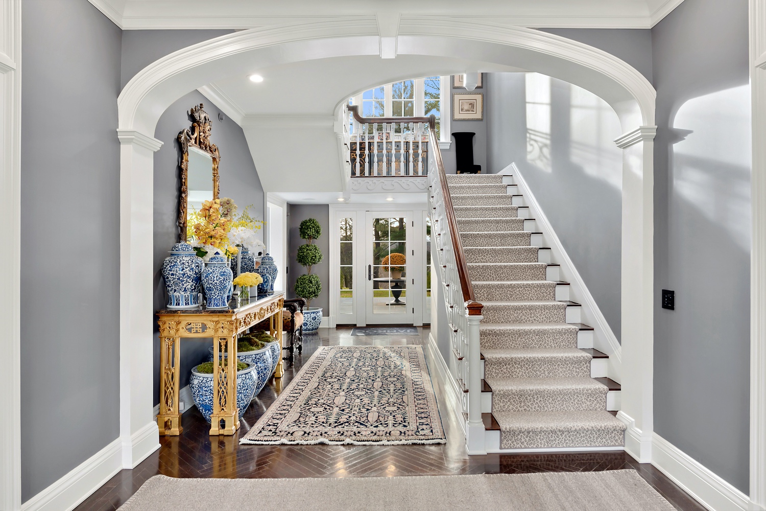 This project involved a complete renovation of and an addition to a once-stately estate situated on 11 wooded acres. The addition to the home involved the removal of an original wing and the creation of a new left wing in order to balance an asymmetrical façade while providing the programmatic needs for the family. The new addition allowed for an attached garage, a mud room, an enlarged kitchen and a family room, as well as bedrooms above for the children. The interiors of the home incorporate traditional finishes with a modern interpretation of color and style to allow for an updated modern estate.