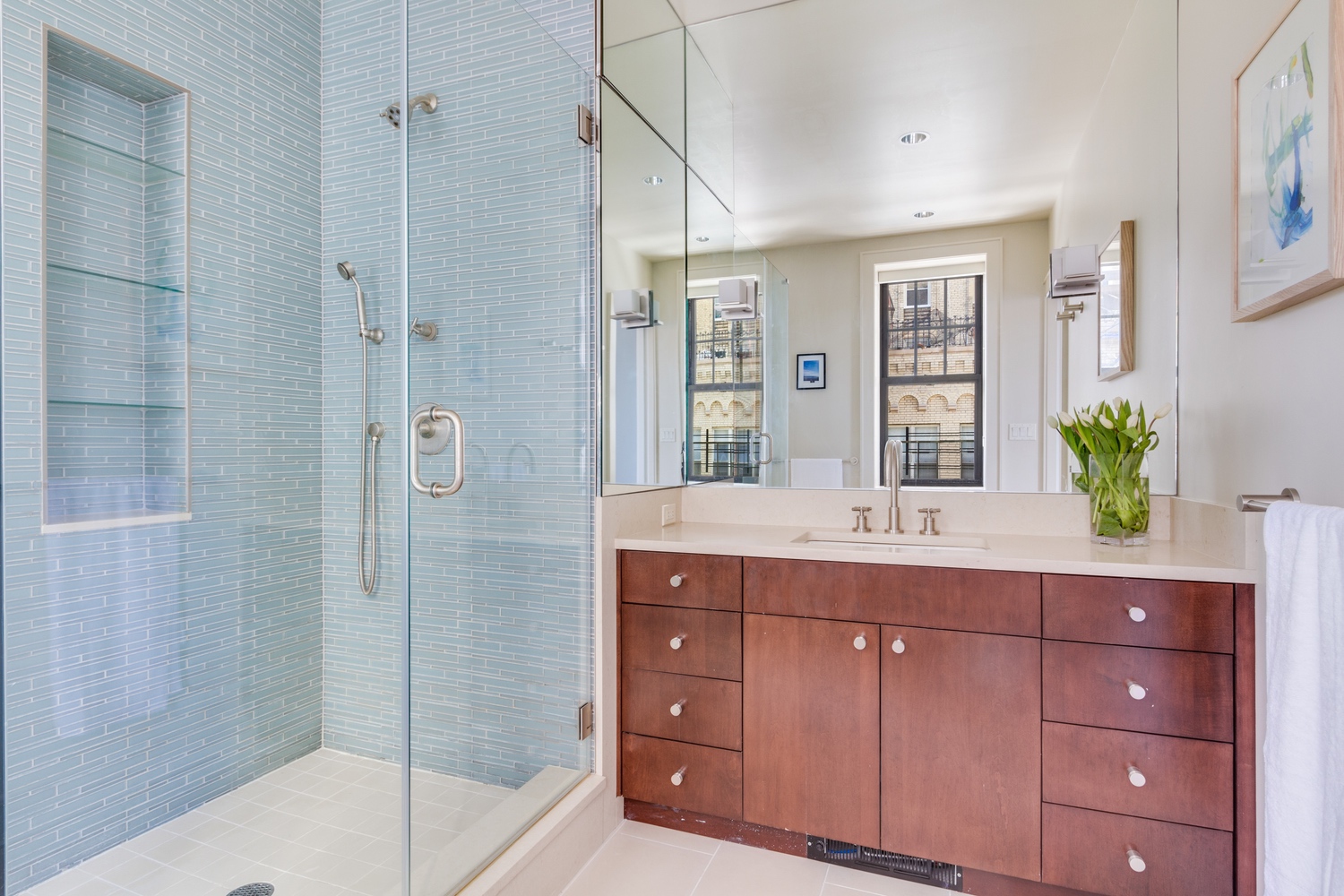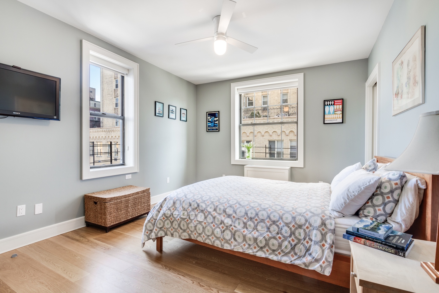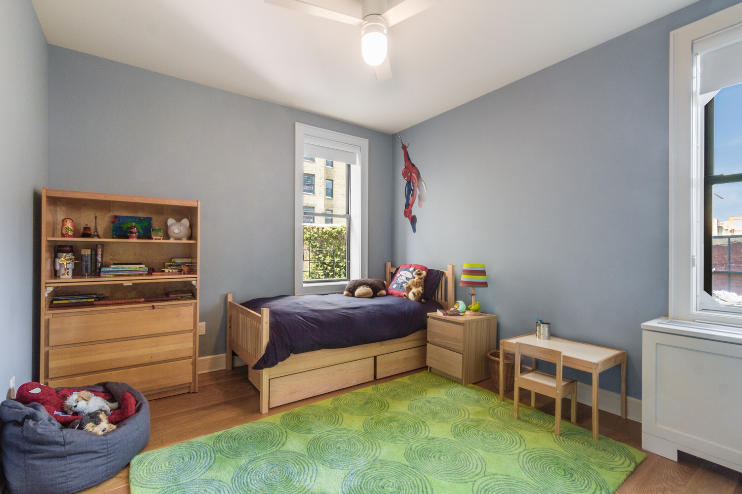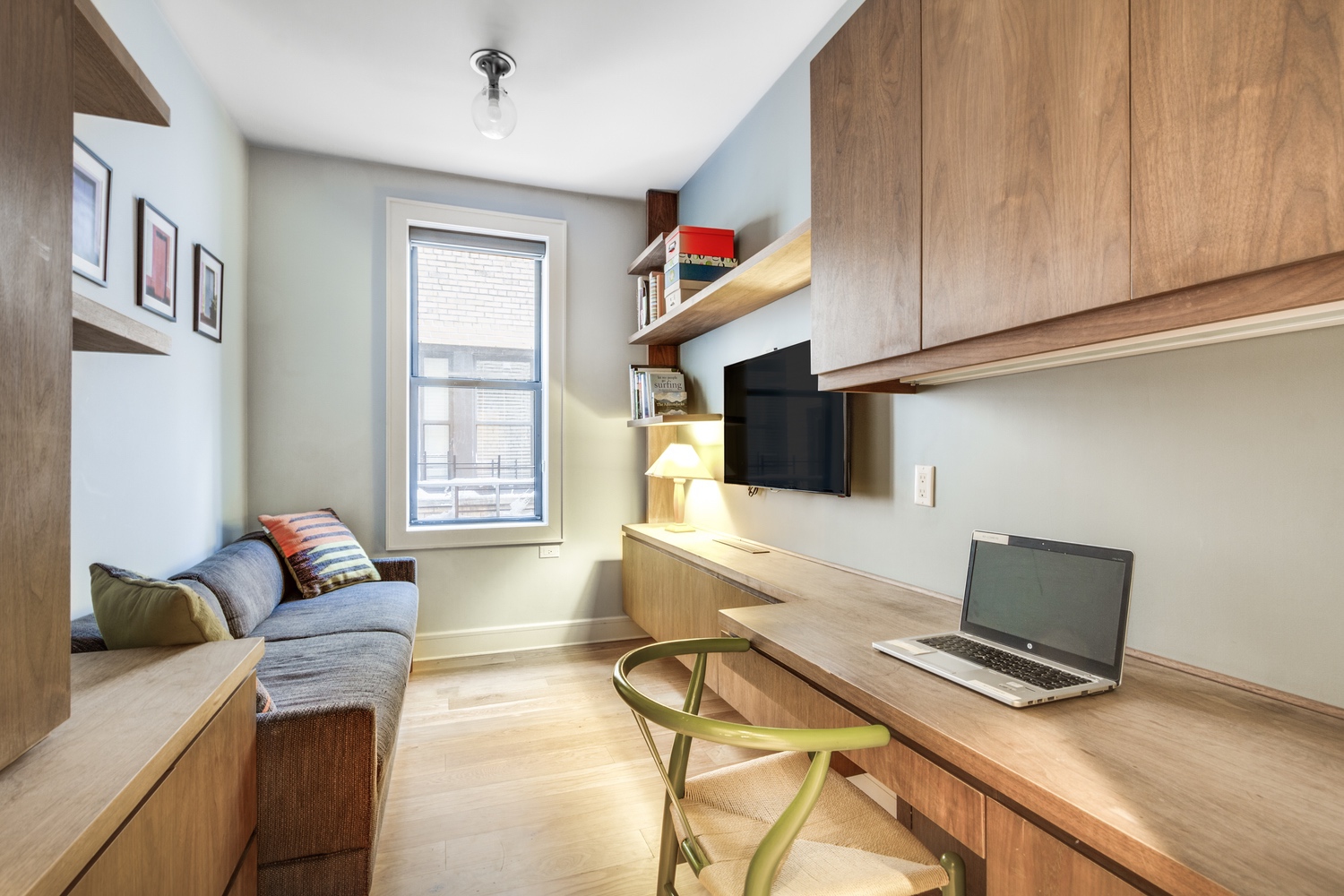 In an outer borough of New York City, two apartments in a pre-war building were joined to create this bright and airy space. We maximized the square footage by removing the wall that separated the apartments. The result was an open floor plan with distinct zones for cooking, dining and sleeping. The home is outfitted with midcentury-style furnishings accompanied by boldly colored accents to liven the primarily neutral décor.