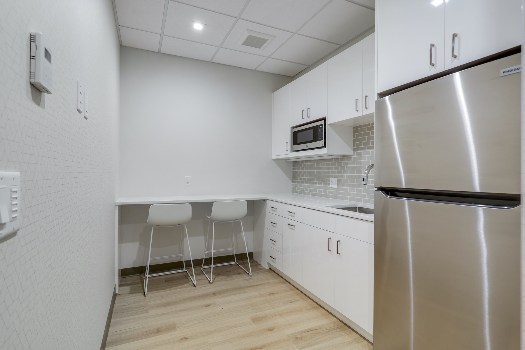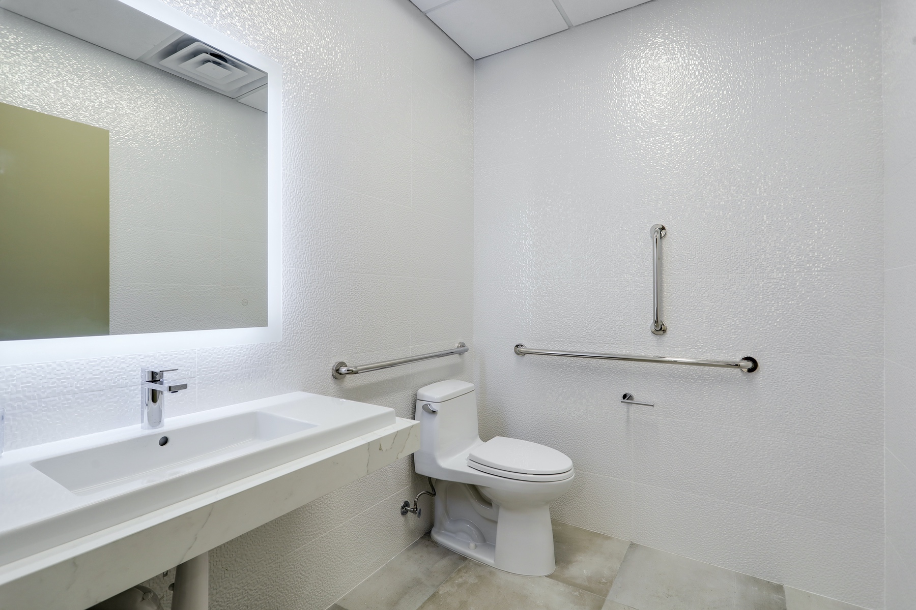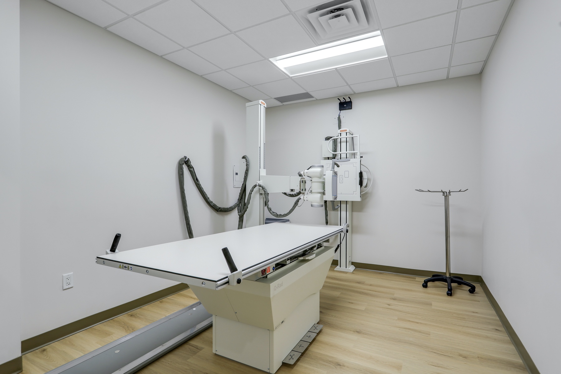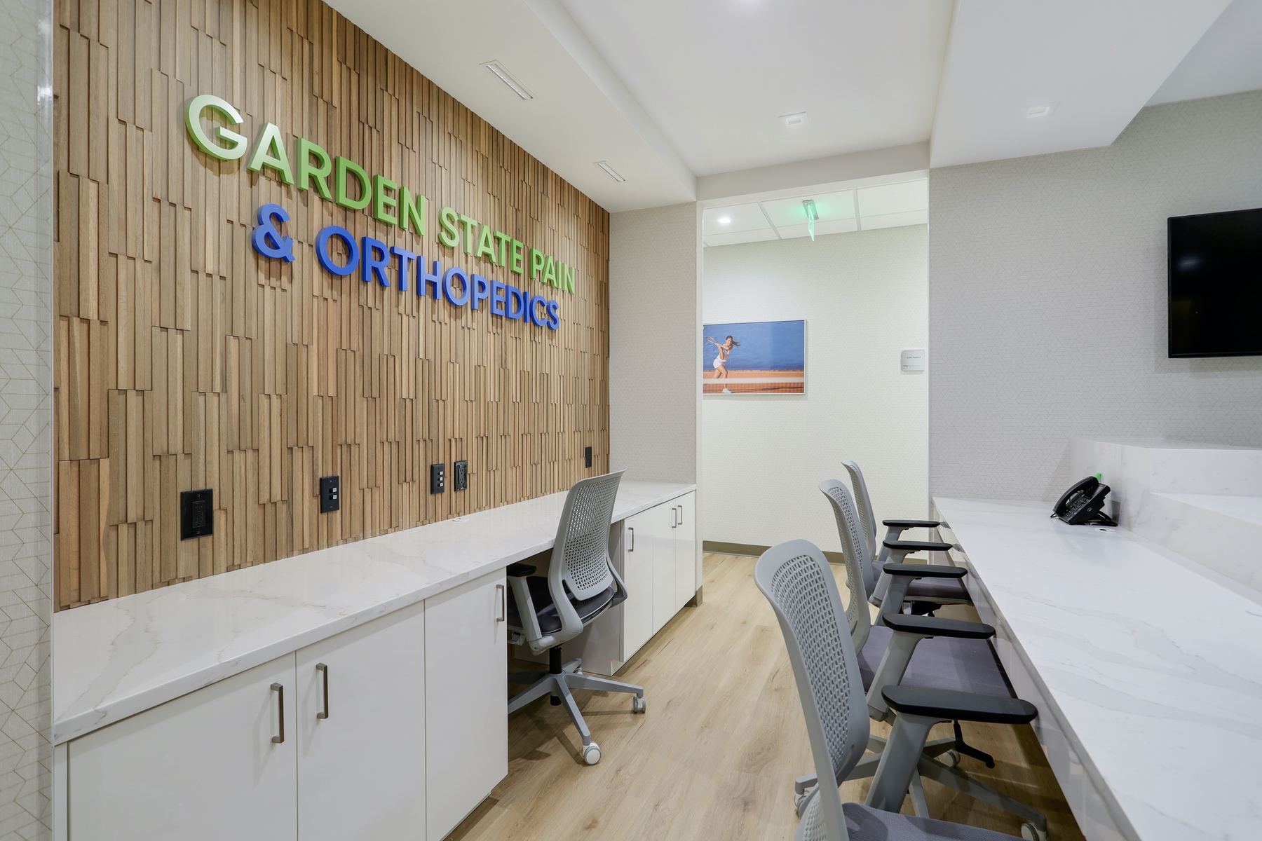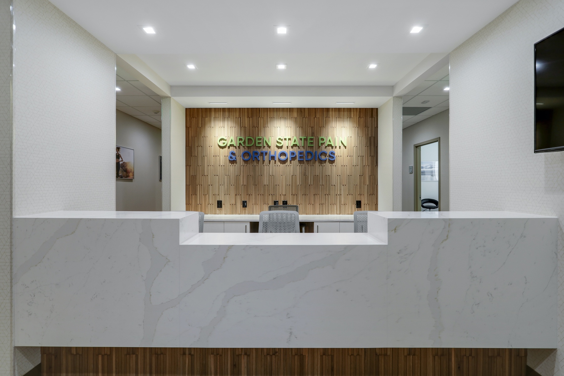 This state-of-the-art facility combines cutting-edge medical technology with a soothing environment to help patients feel confident and at ease in their surroundings. White oak floors provide warmth while the wood feature wall behind the reception desk offers a soothing nod to nature. The waiting area is highlighted by a custom live-moss art sculpture in the shape of the facility’s tree logo.