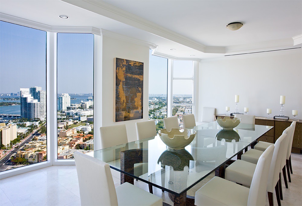 This project involved combining two apartments to create a spectacular a 5,000-square-foot residence at the tip of Miami Beach, FL. The apartment is lined with full-height windows overlooking South Beach. The expansive spaces feature copious built-in cabinetry, interesting millwork accents and sophisticated, contemporary furnishings. With 4 large bedrooms, each with an en-suite bathroom and walk-in closet, the finished apartment offers luxury living with glorious views of South Beach.